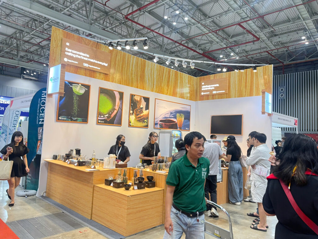 コーヒーに加えて、ここ1年ほどでベトナム市場で人気が高まっている抹茶関連のブースも見られました。具体的には、抹茶を点てるための道具が展示されていました。